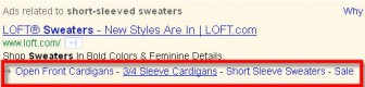 Google now gives you more than just 90 characters of ad text, if you know about and use Ad Extension options. With Ad Extensions you can show products, give locations and phone numbers, or list additional links, all associated with a single ad.