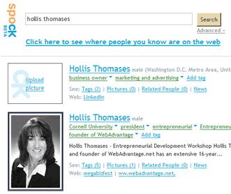 Spock is a search engine for those who like to look up old friends online. The engine compiles info from biography pages, social networks, news sites, blogs, directories, and other places where personal information may be accessible online. The engine adds an additional social networking element by allowing users to help refine results by tagging entries for people, adding related people to an entry, adding a news feed or news item, or adding links to online profiles. Spock is a bit like a Wikipedia for people. The site is still in BETA and it shows, but Spock is a great example of how search engines are adapting and customizing their features for the Web 2.0.